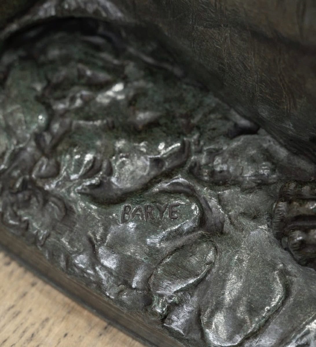 Signature of the sculptor « BARYE » in hollow , on the richly chiseled naturalistic oval terrace .