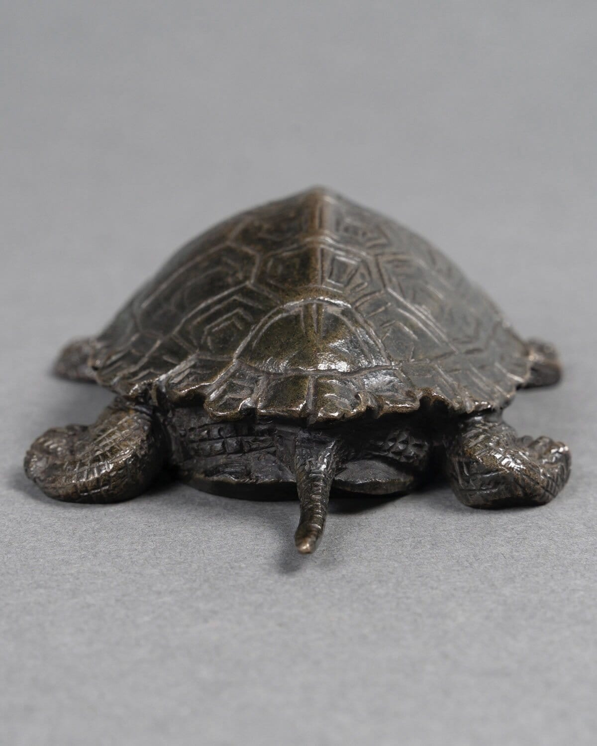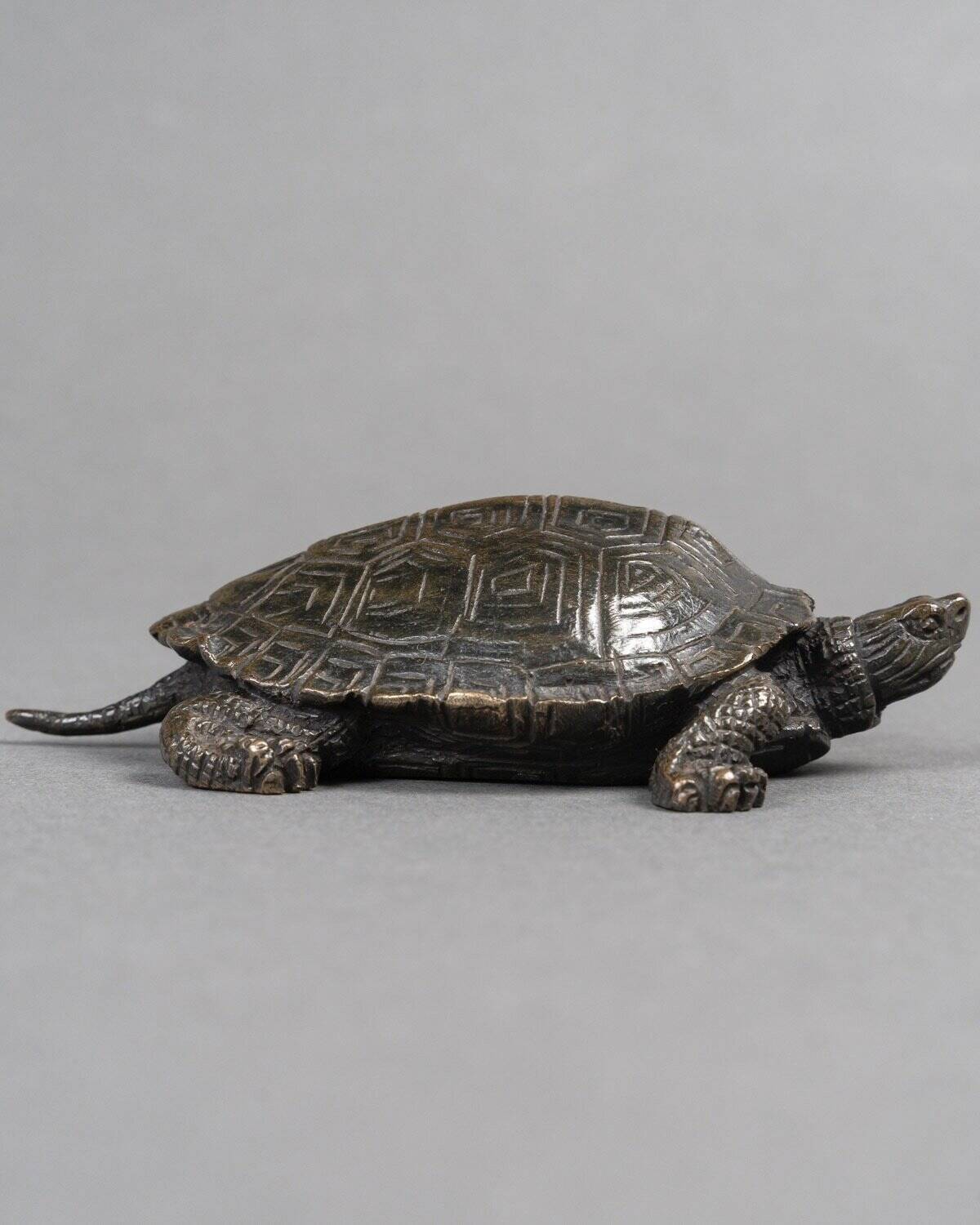 His meticulous approach , visible through the realistic textures of the shell and limbs , testifies to a profound admiration for nature. The bronze , with its patina , enriches the work and invites tactile interaction .