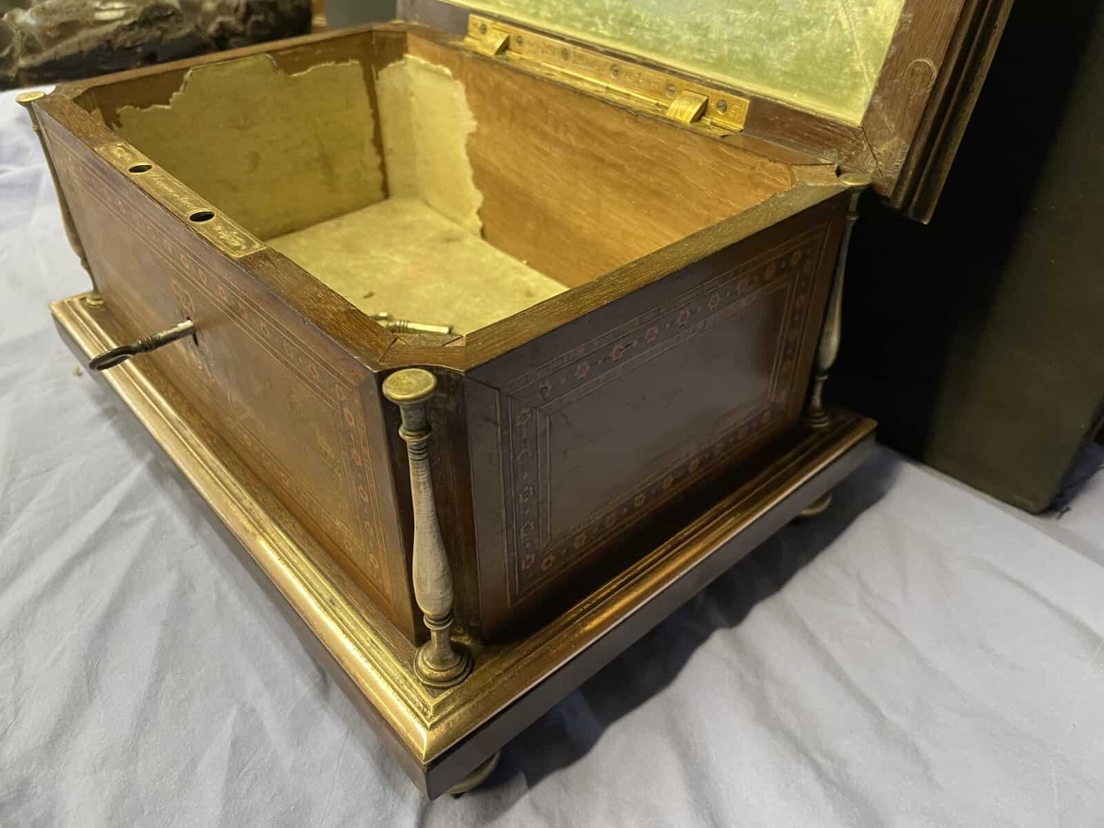 Restes de velours du capiton intérieur.La charnière en bronze ,est ciselée et en parfait état.