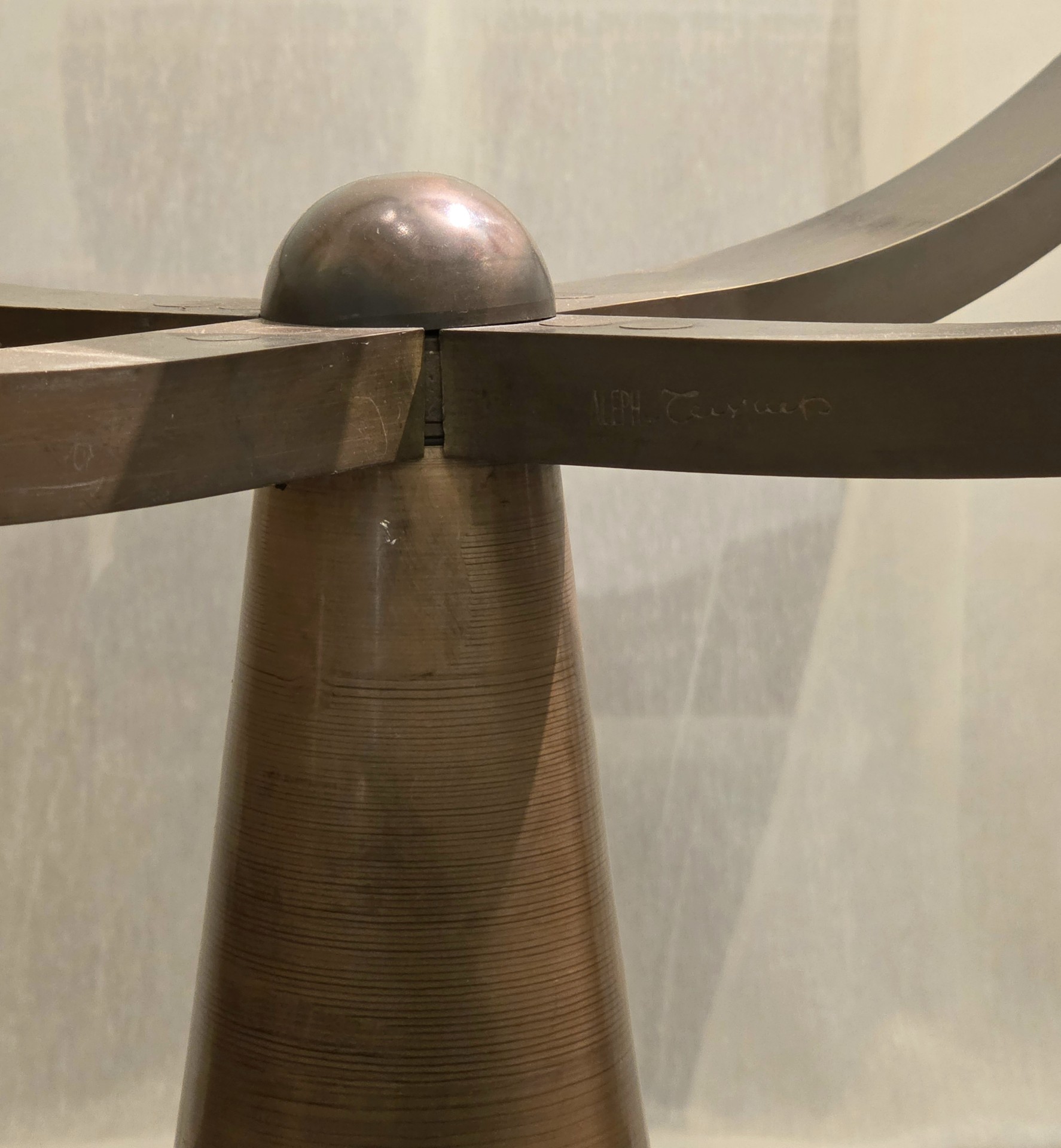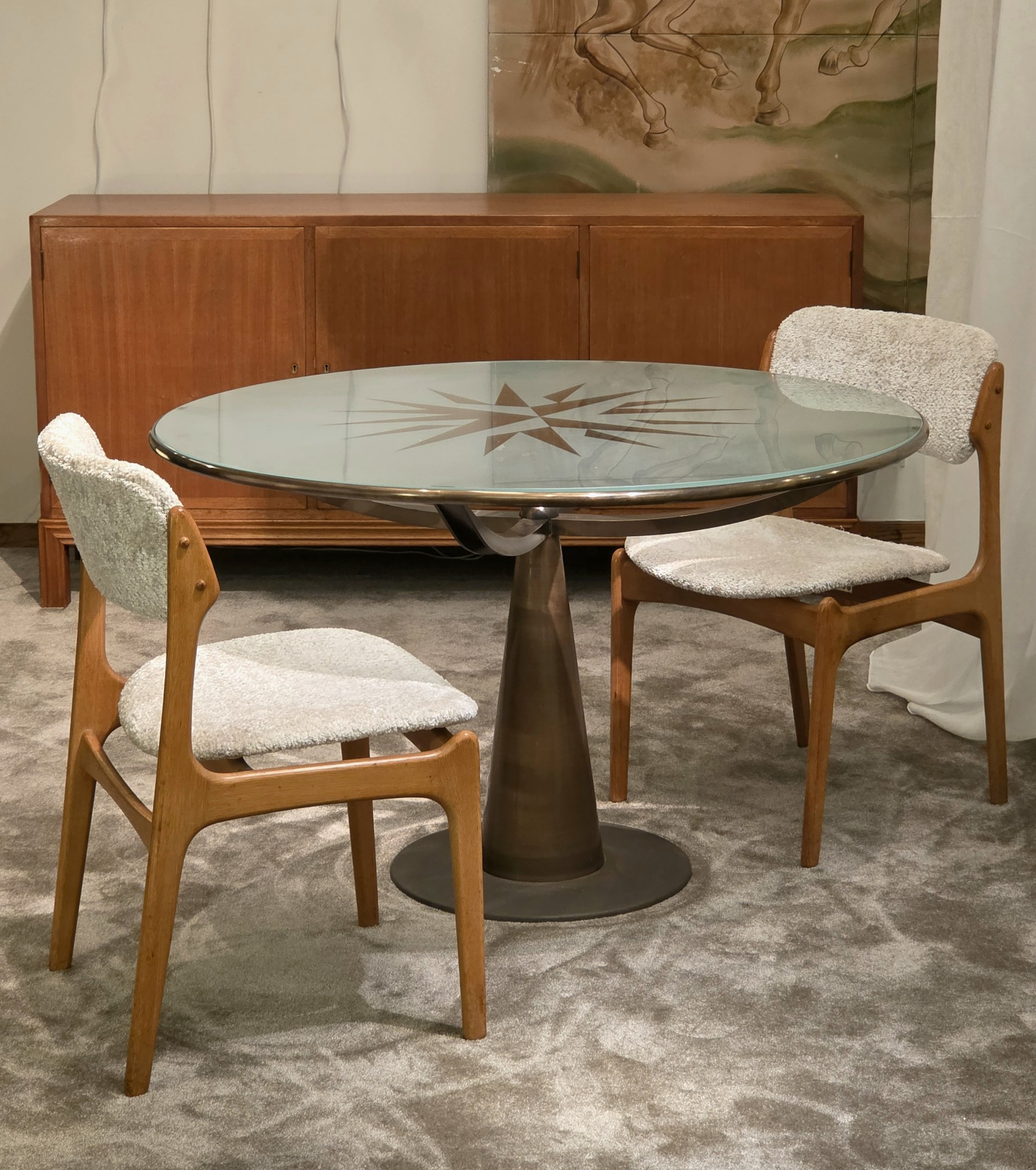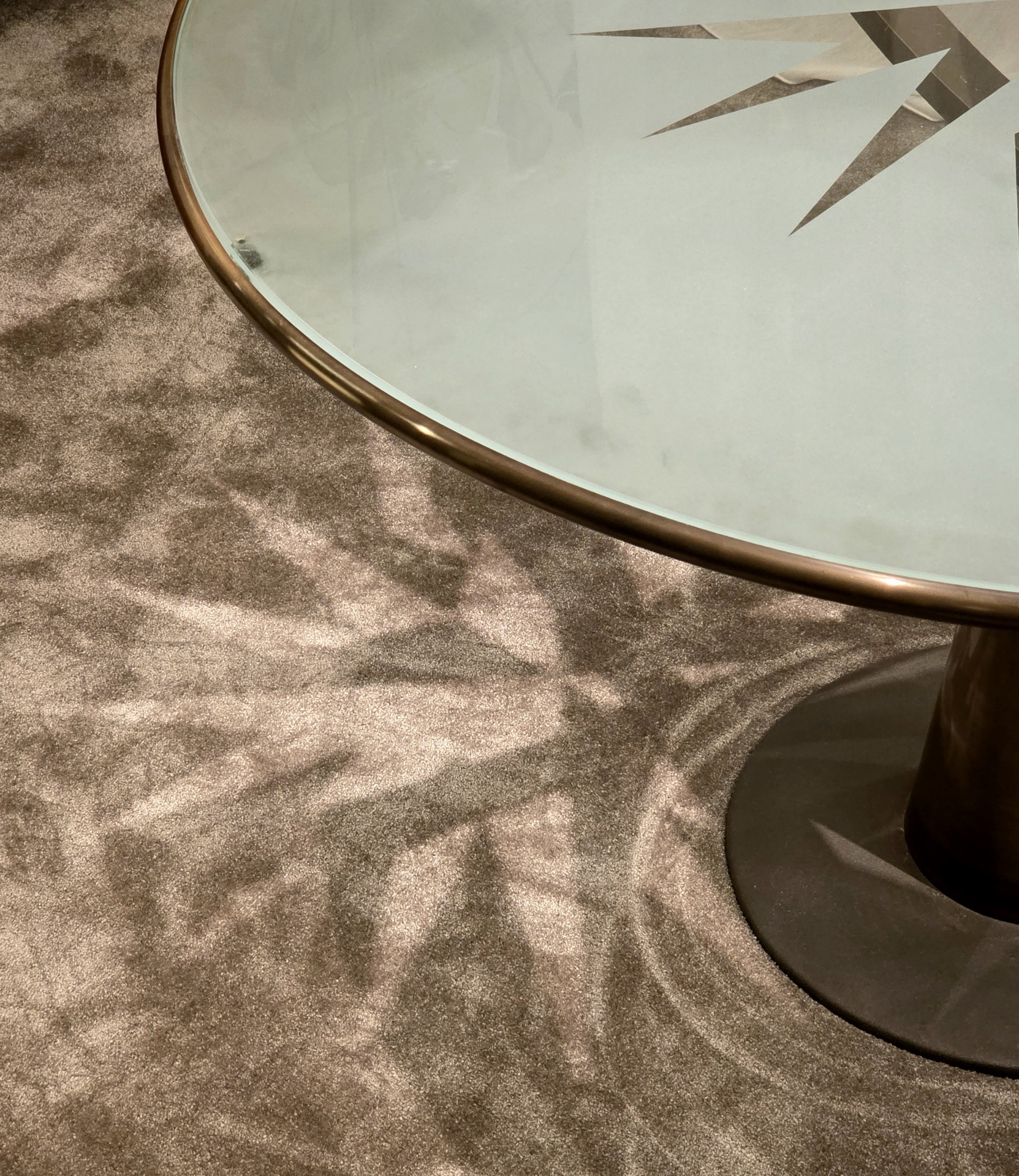 Travail en laiton métal et verre givré, sablé à décors d’une rose des vent.