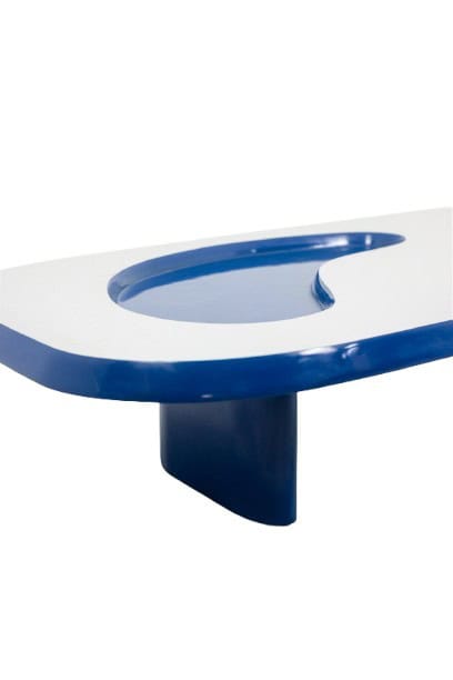 Table basse de forme organique en aluminium et laque. Contemporain.