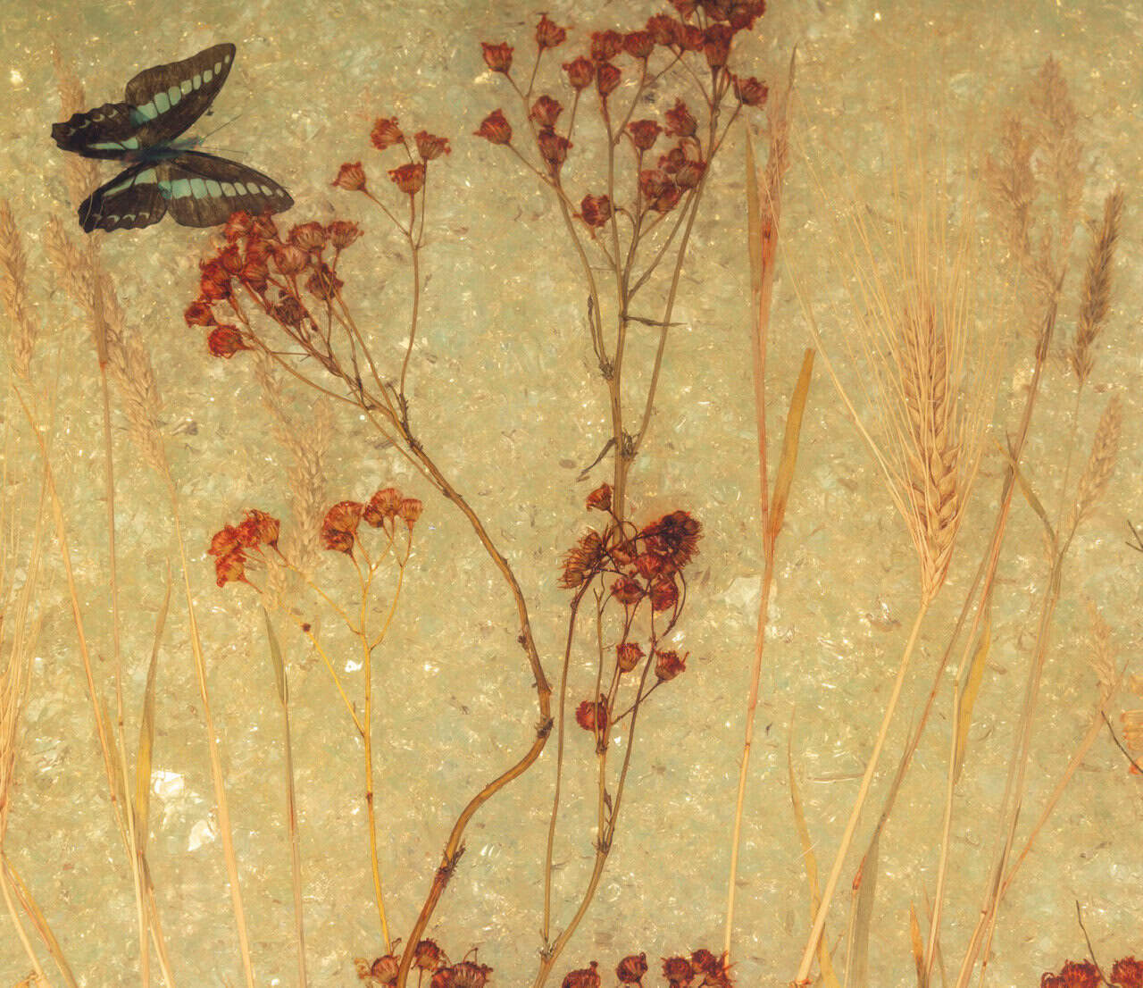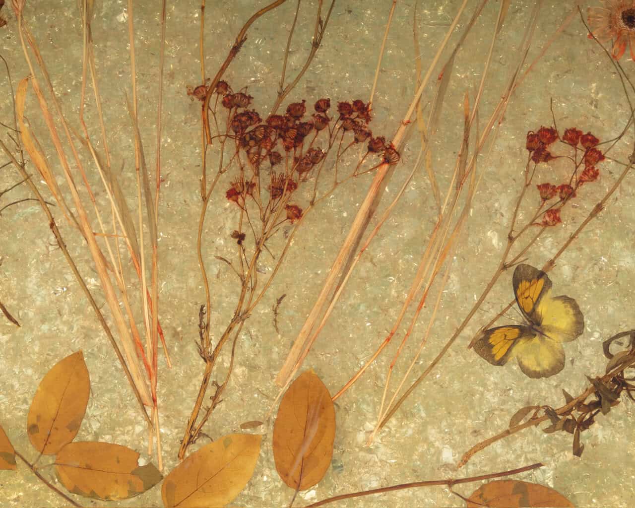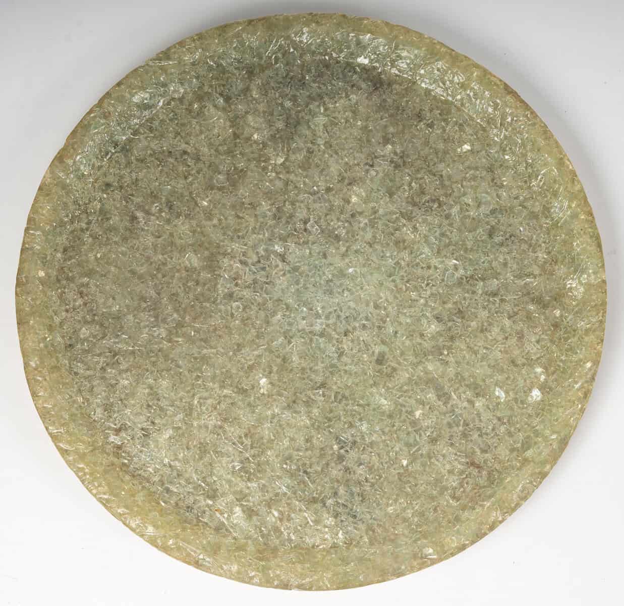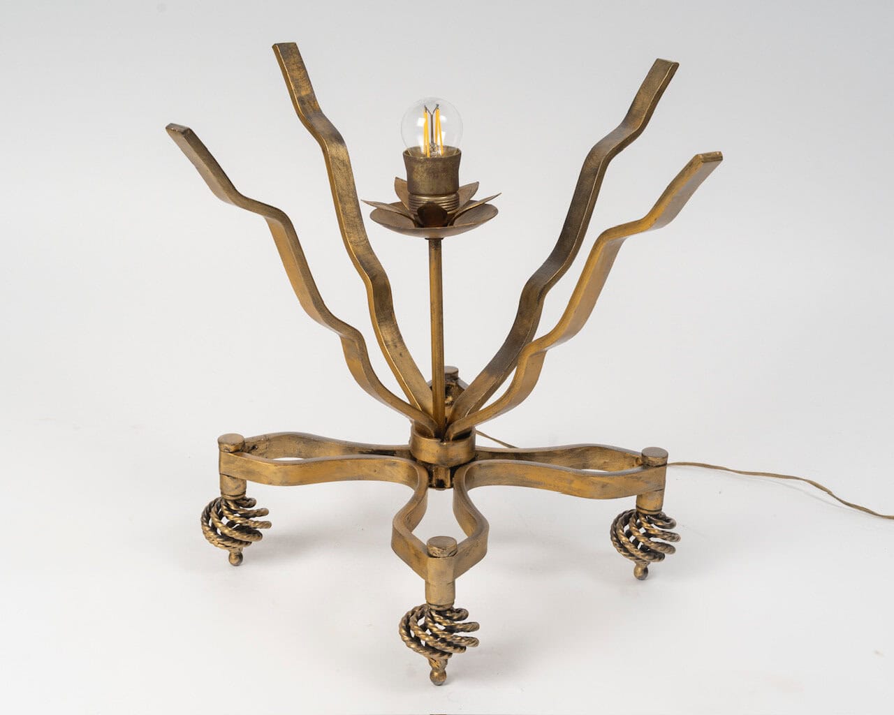 Table d’appoint avec plateau éclairé en résine, le pied en métal doré patiné.