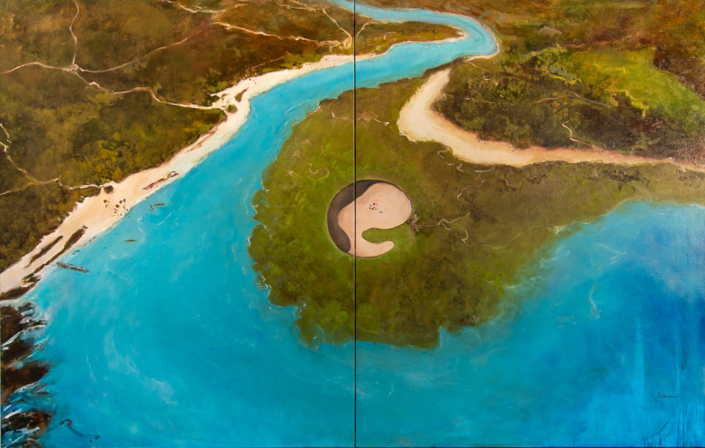 Cette oeuvre intitulée « Green Secret, Le Veillon » est un diptyque, Huiles sur toile de dimension 146×114 x 2 cm issue de la série maritime 2025