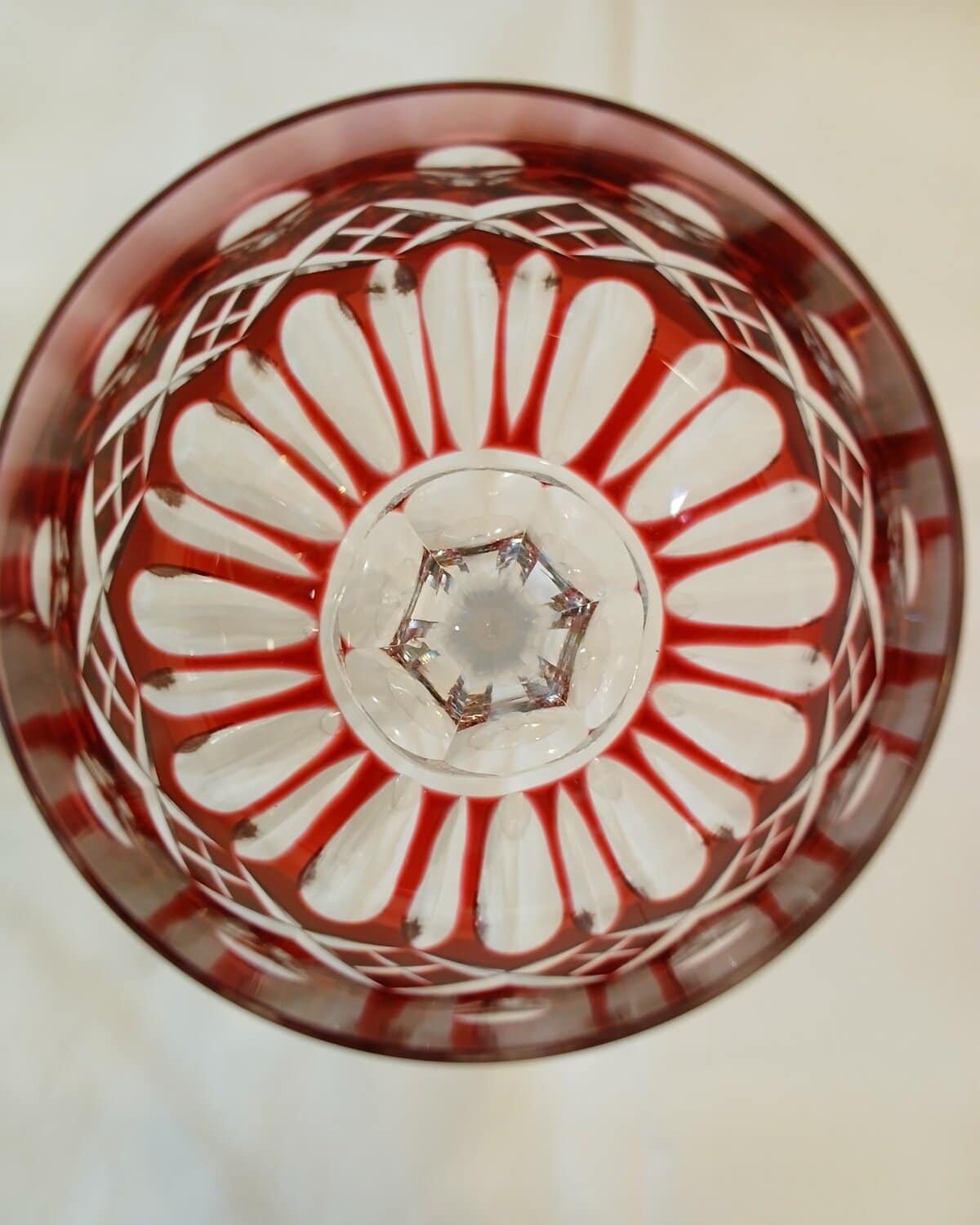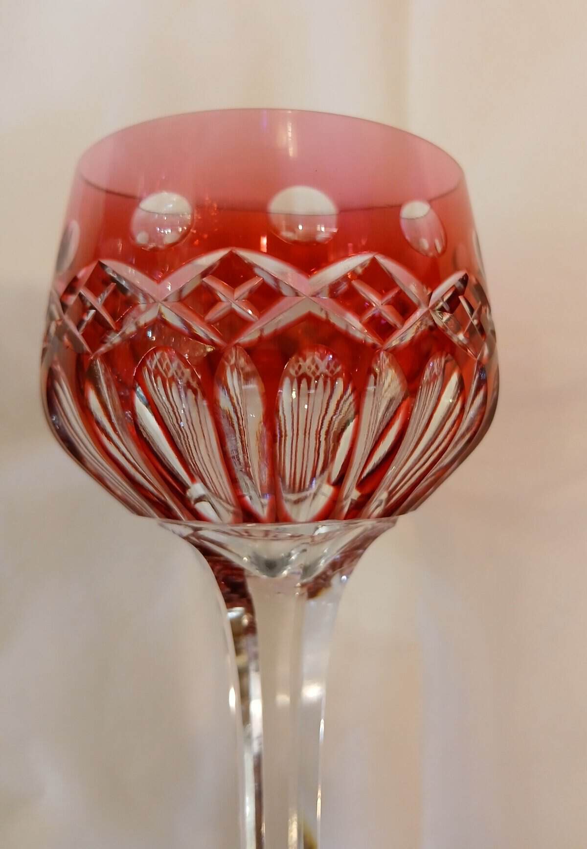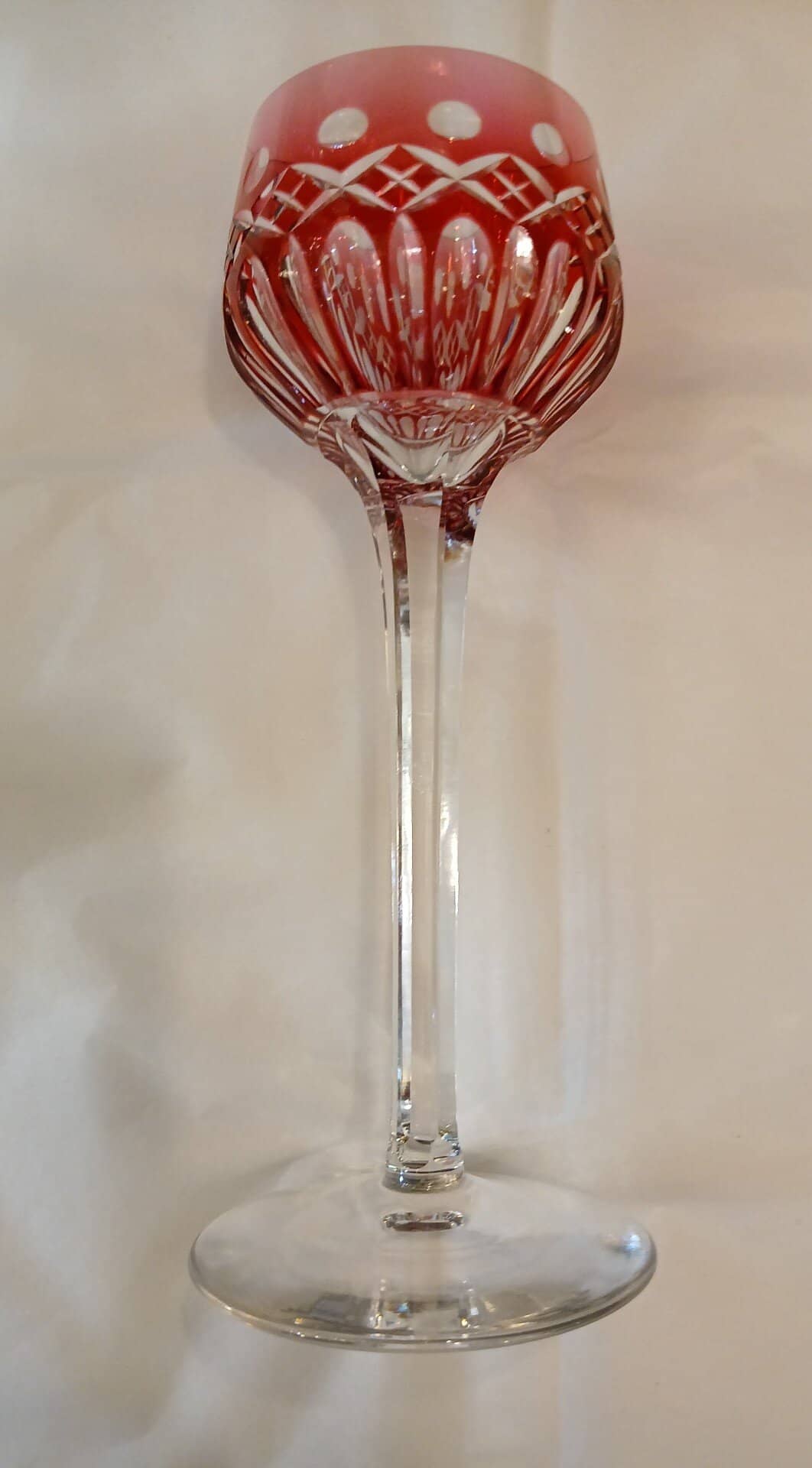Grand verre roemer de la cristallerie Saint Louis signé sous le pied. H : 20 cm. Diamètre du buvant 6,5 cm. Diamètre du pied: 8 cm. Déjà présent dans le catalogue de 1948 avec des petites variantes.