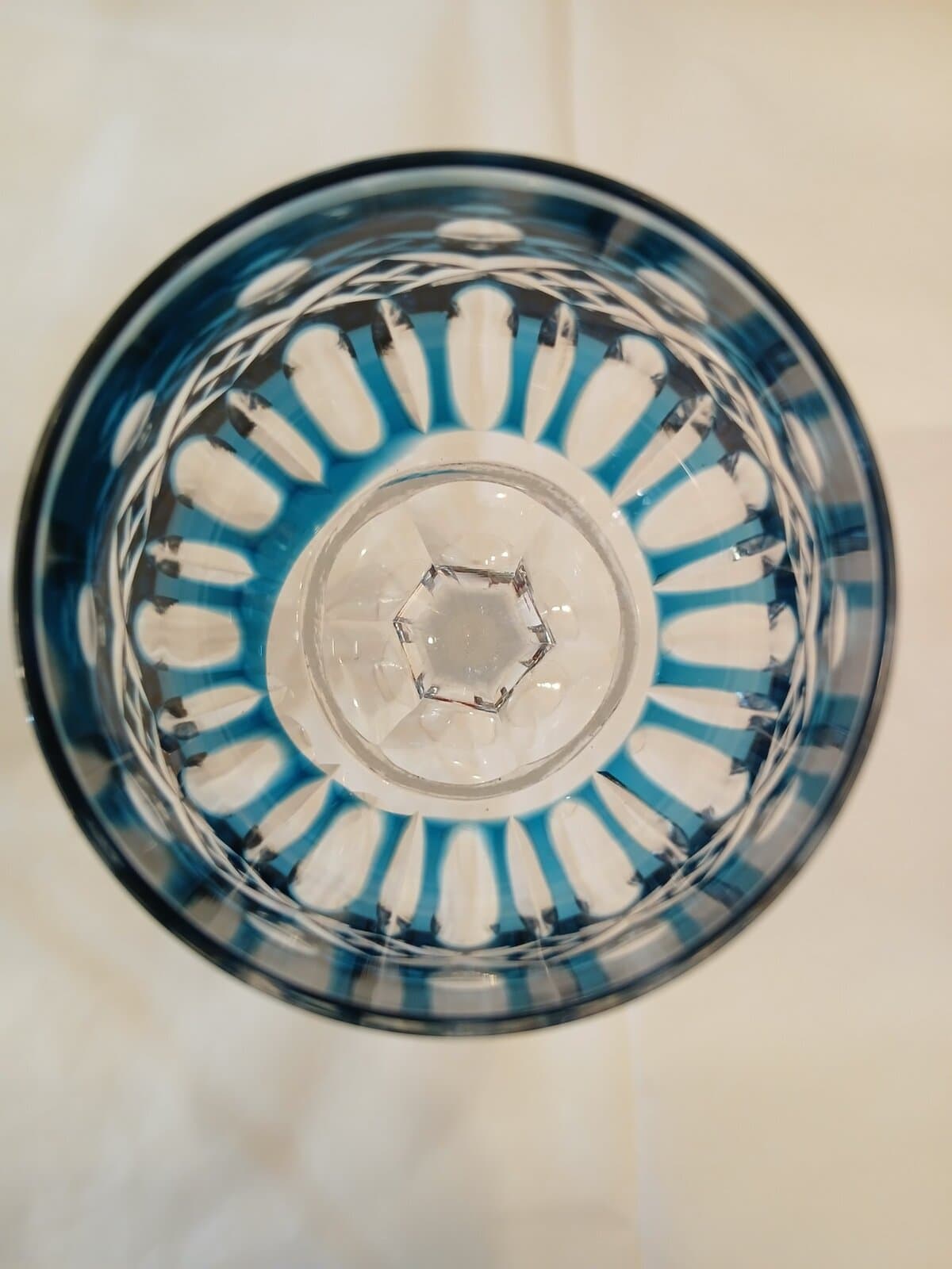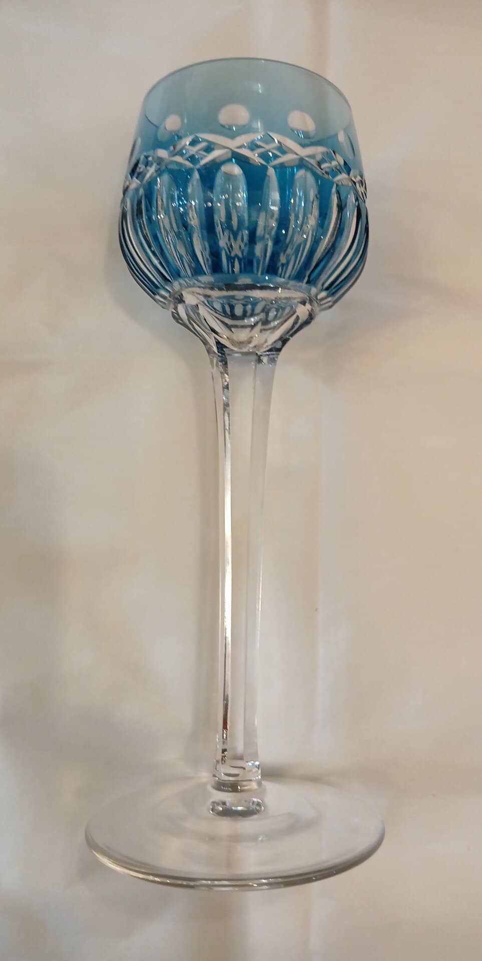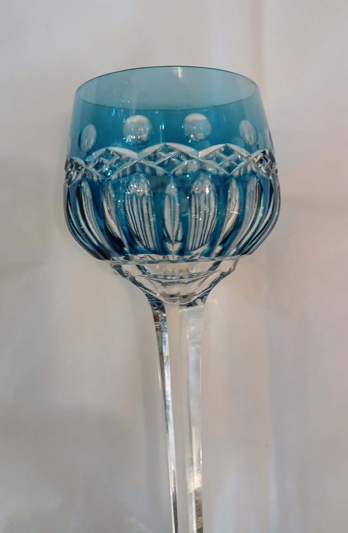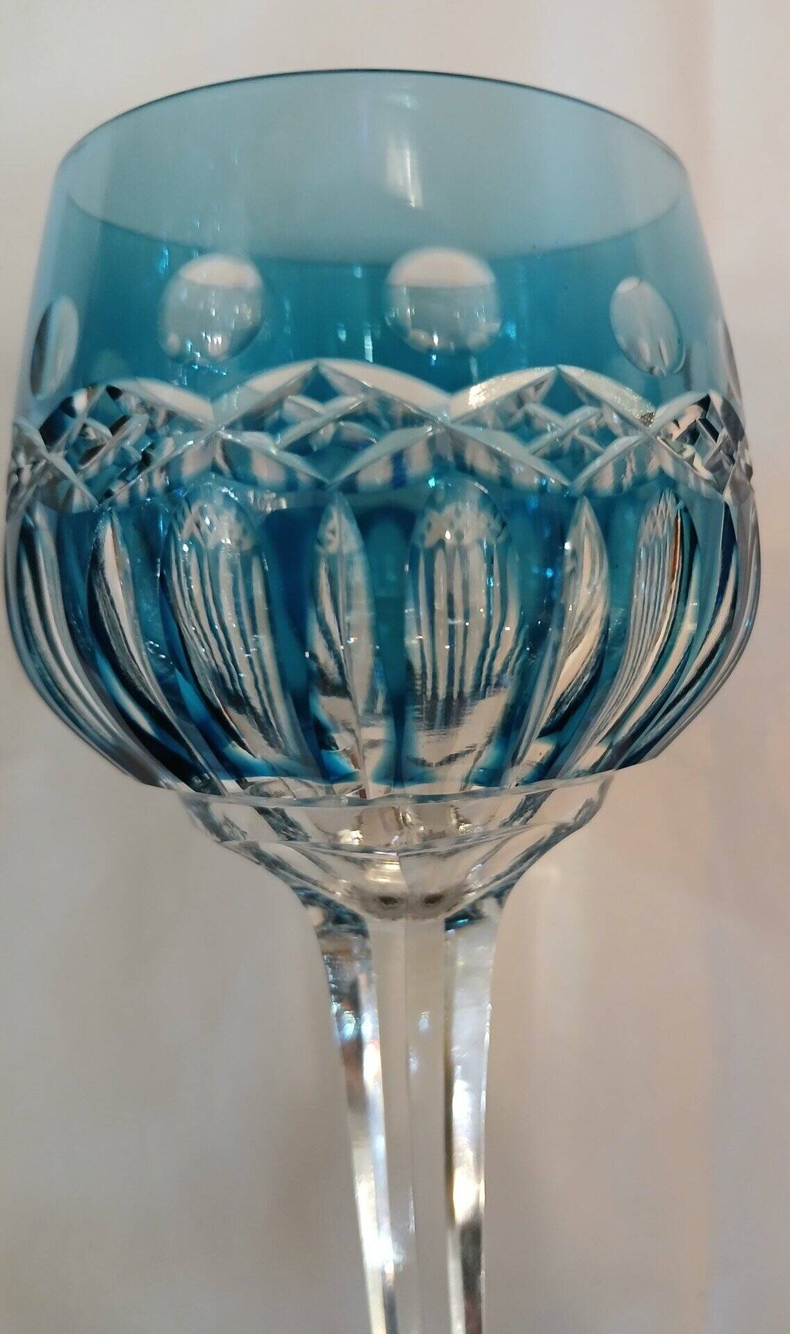 Grand verre roemer de la cristallerie Saint Louis signé sous le pied. H : 20 cm. Diamètre du buvant 6,5 cm. Diamètre du pied: 8 cm. Déjà présent dans le catalogue de 1948 avec des petites variantes.
