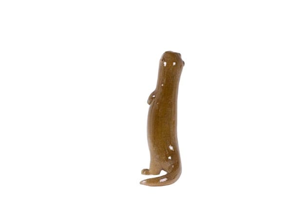 Loutre se tenant debout, pattes avant jointes, en grès chamotté et émaillé de couleur terre de Sienne et noir (cf photos), sculpture originale estampillée.