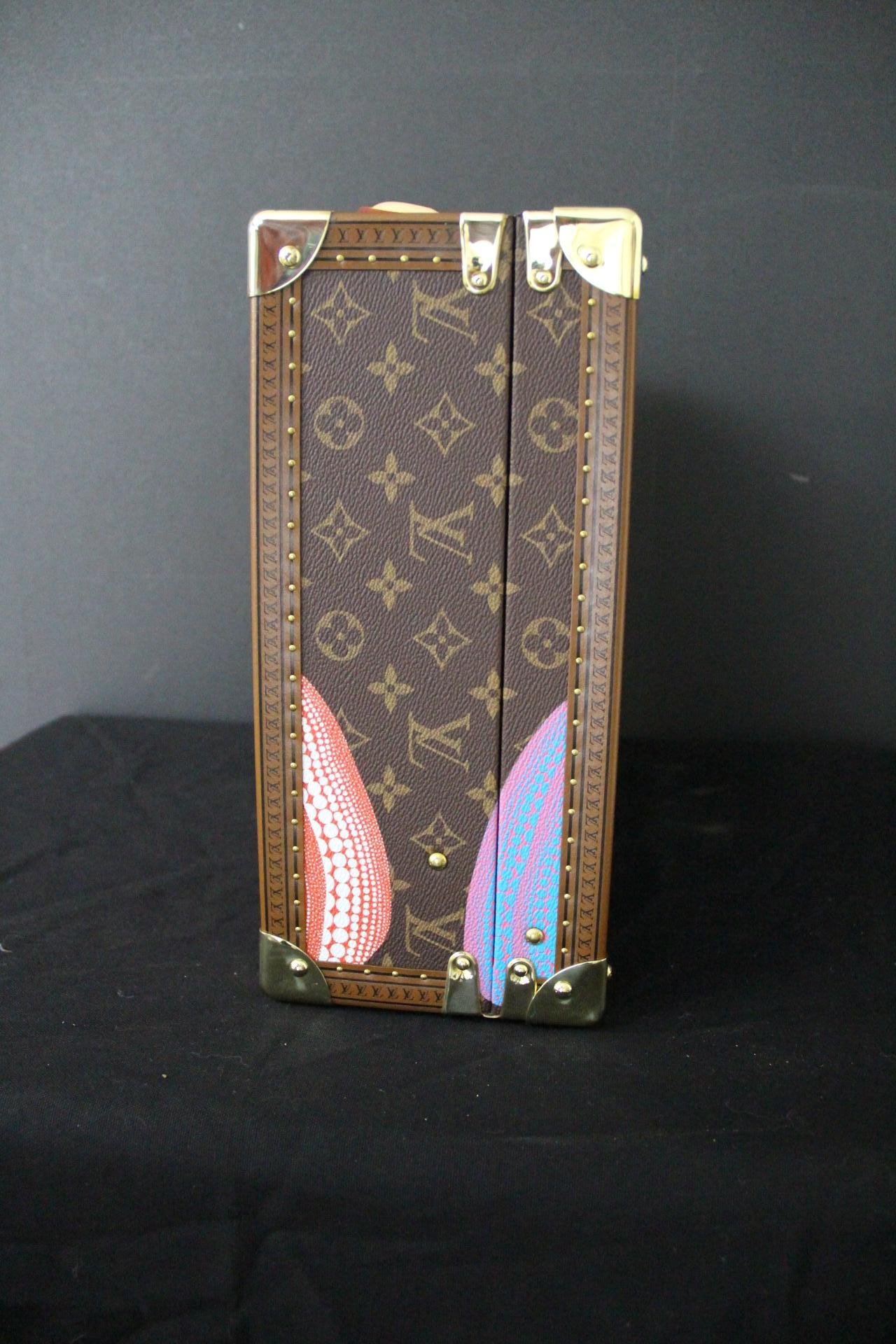 Il possède toujours son sac à poussière d’origine Louis Vuitton et Kusama, son porte-nom en cuir Louis Vuitton, sa clochette en cuir, ses 2 clés d’origine en état de marche et sa boîte d’origine. Sa boîte n’est pas en parfait état. Ses dimensions sont de 40 cm x 15 cm et 35 cm de hauteur. Il pourrait être utilisé pour les voyages, mais aussi comme élément de décoration haut de gamme dans de beaux intérieurs… Et il serait parfait au sommet d’une pile de bagages Louis Vuitton.