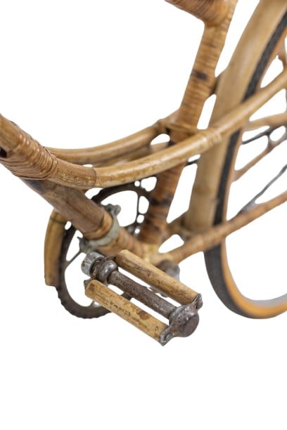 Vélo habillé de bambou et de rotin. Travail artisanal des années 1970.