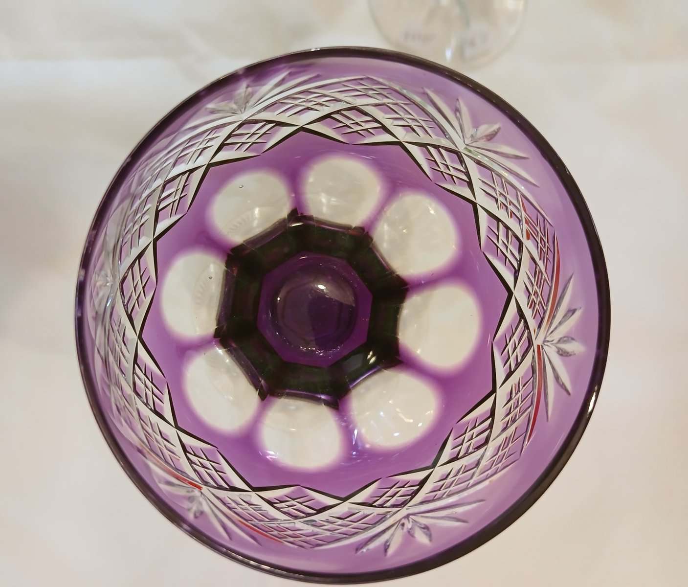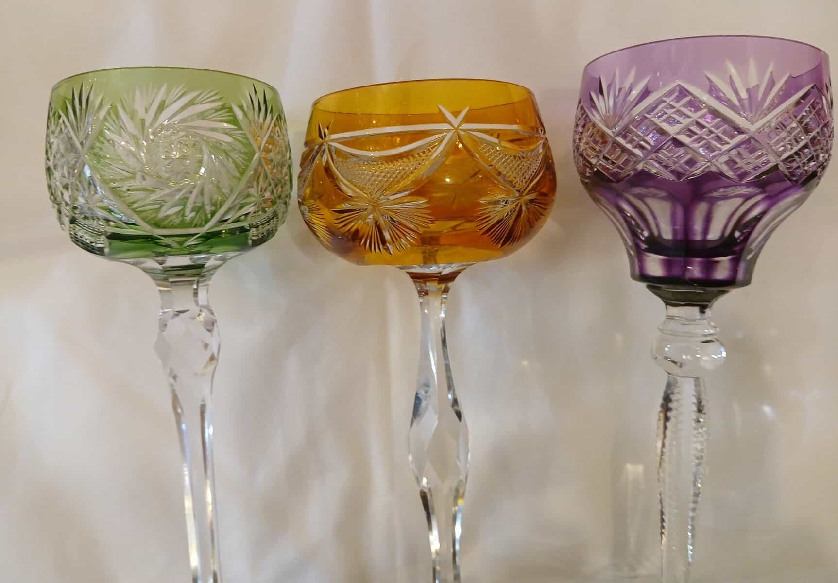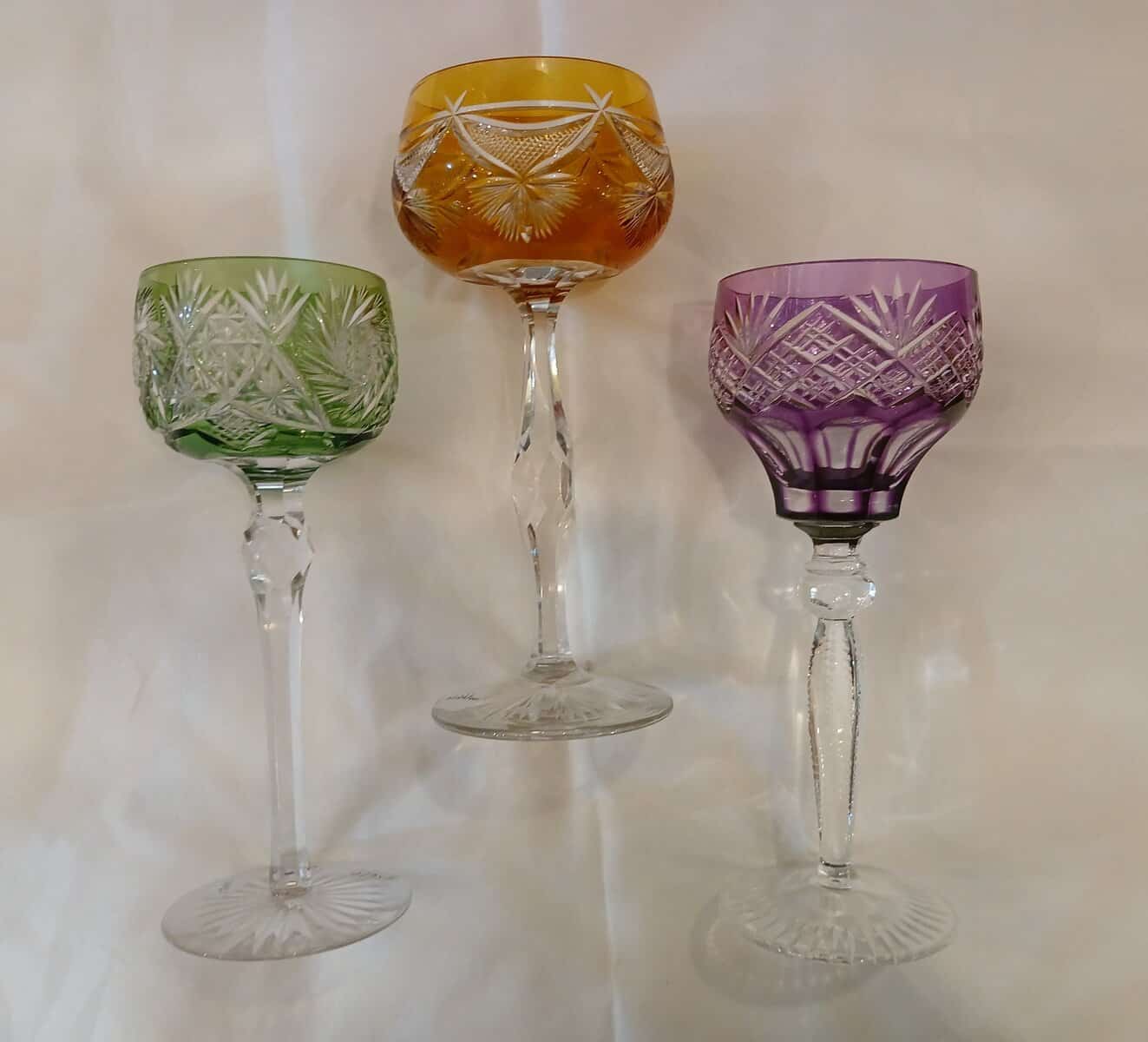 Très beaux verres en cristal de couleur en parfait état. Hauteur de 19 cm à 20 cm