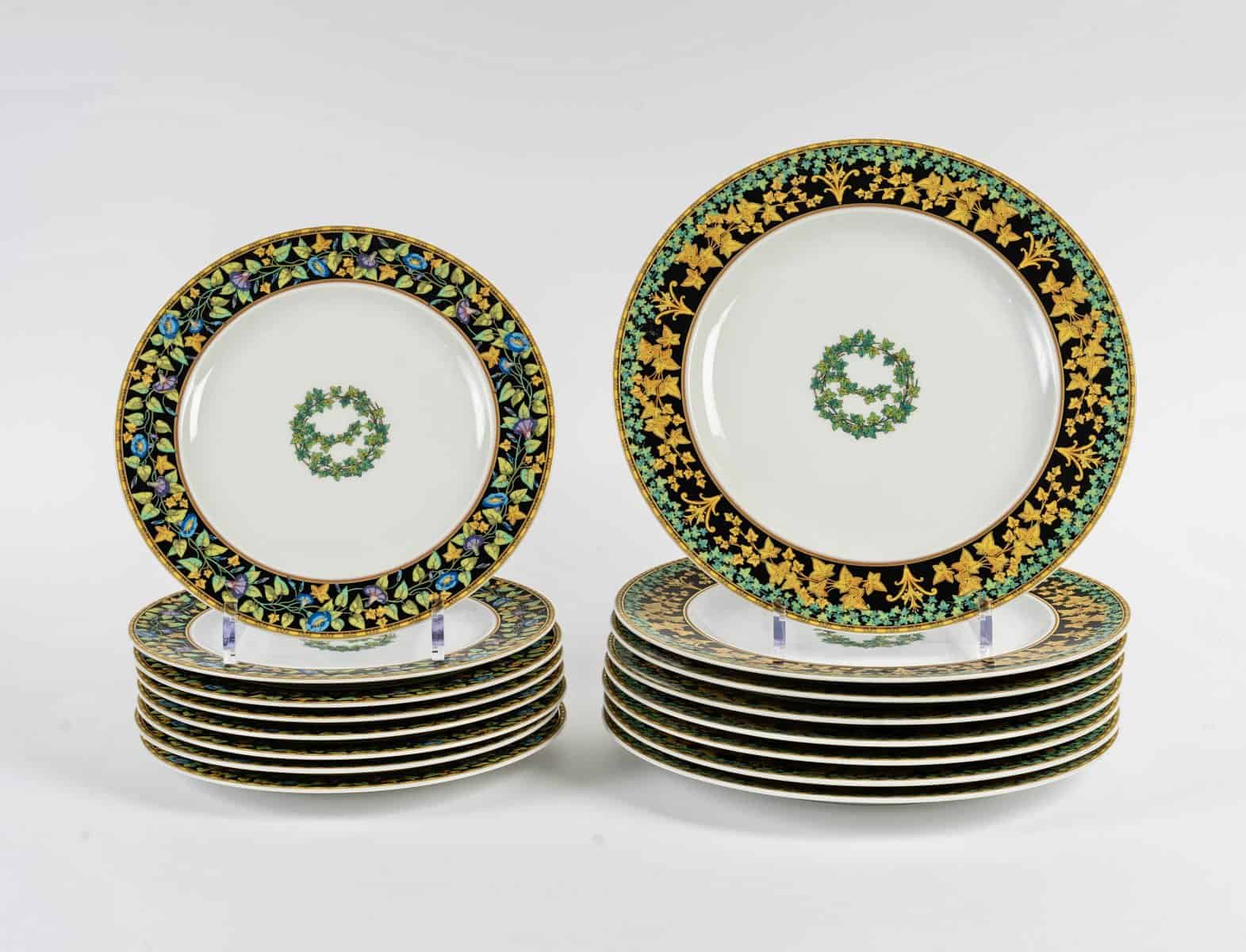 Service de Table « Gold Ivy » (Lierre d’Or) en porcelaine créé par Versace.